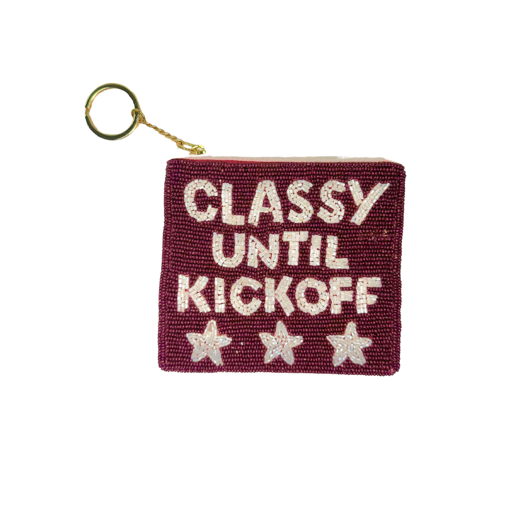 Classy Until Kickoff Beaded Coin Pouch