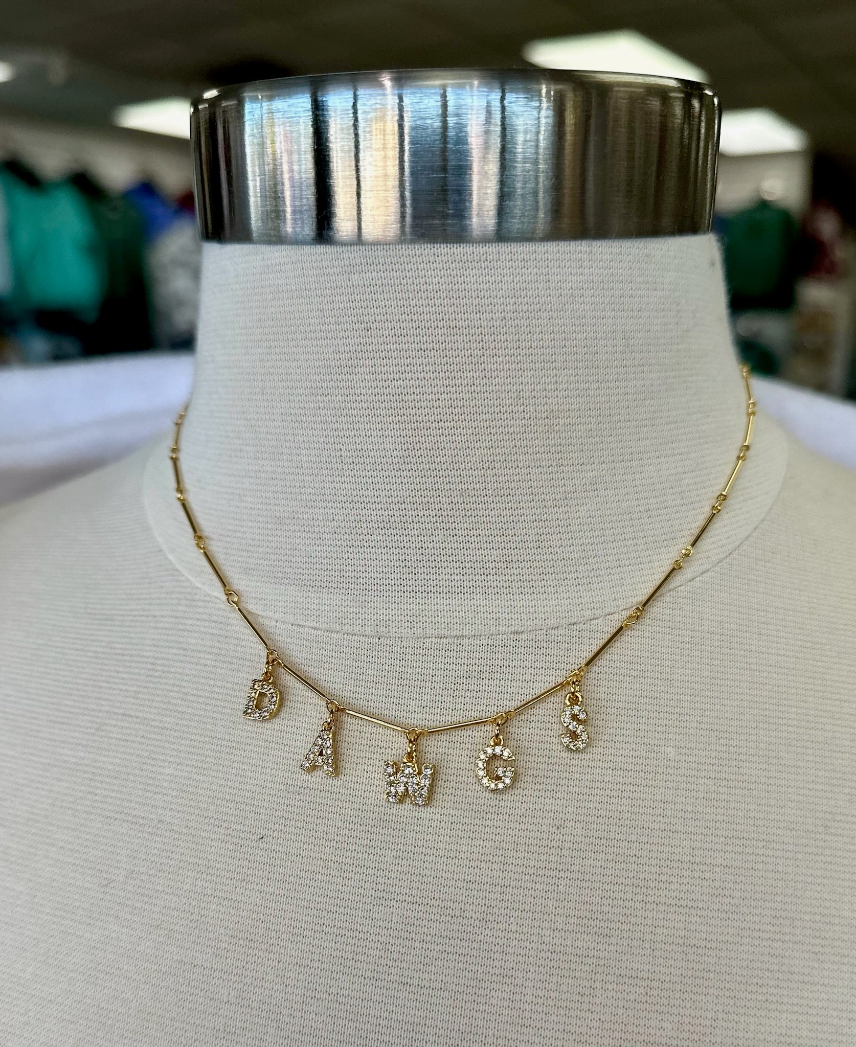 Make a statement with this dainty, yet must-have, Dawgs Gold Drop Letter Necklace! An essential in any wardrobe, this cute piece adds a sparkle of flair to your look. Be the envy of your friends and rock this all-new accessory!