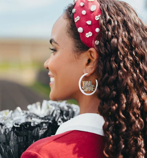 Score major style points on gameday with these HAIL STATE hoop earrings! Made with dazzling white pave and easy-to-wear post backs, these earrings show off your team spirit in a chic and playful way.