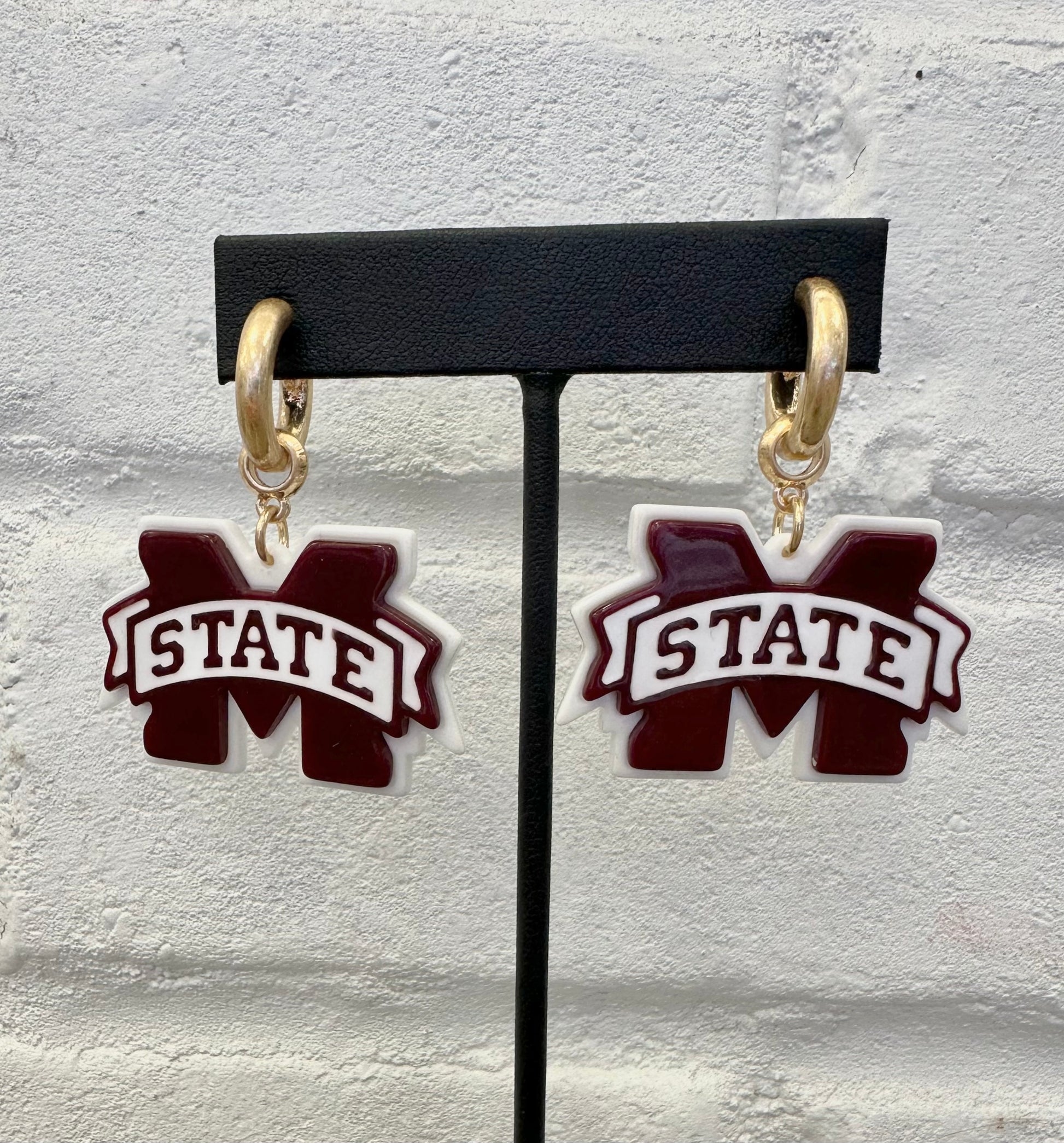 Show off your school spirit with our M Banner Drop Hoop Resin Earrings! Add a unique touch to your outfit, making it clear which school you represent. No doubt you'll be the envy of your friends with these stylish earrings.