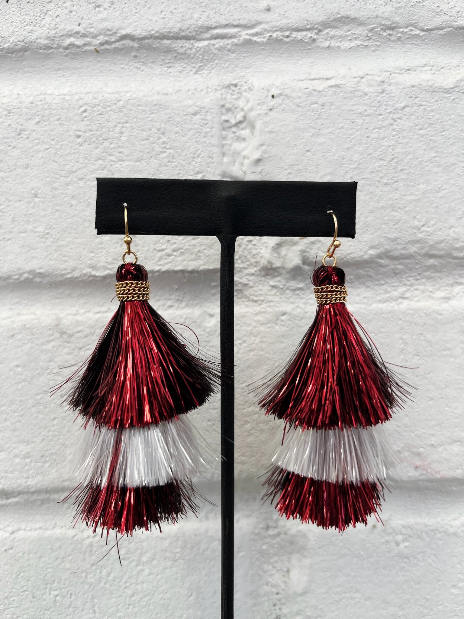 Maroon and White Tassel Earrings