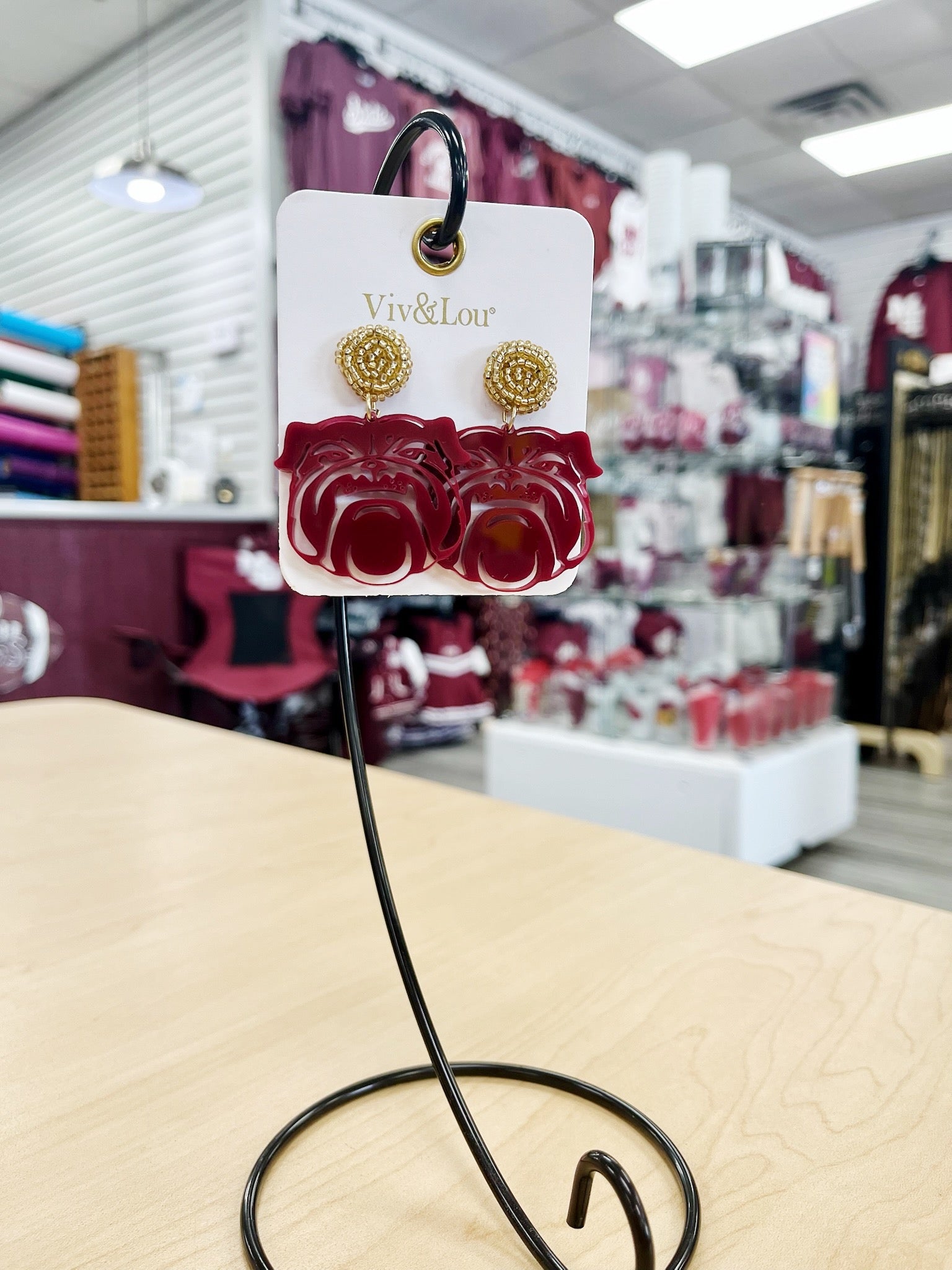 Unleash your unique style and add some charm to your outfit with our Maroon Acrylic Bulldog Earrings. These playful earrings feature maroon acrylic bulldogs, embrace your quirkiness and make a statement with these earrings!