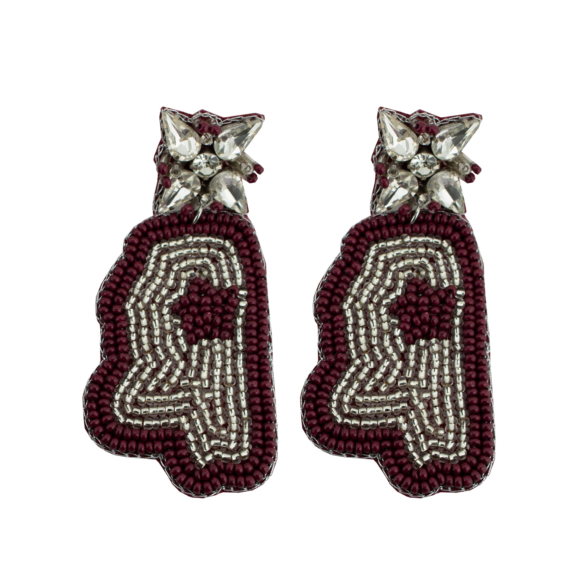 Spice up your wardrobe with our Rhinestone Mississippi State Outline Earrings! These eye-catching accessories are sure to make a statement and add a fun touch to any outfit. Ideal for those who appreciate quirky and unconventional style.
