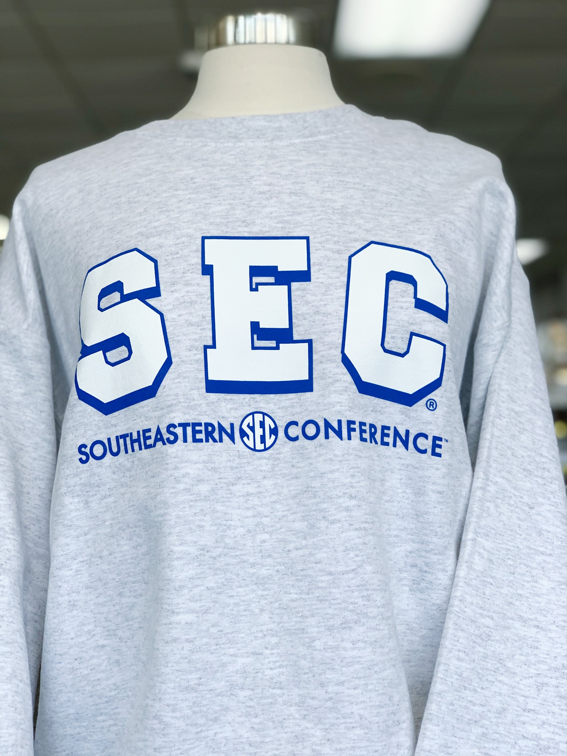 Rep your SEC pride with this grey sweatshirt! It features heather grey fabric with a vintage inspired SEC logo printed on it. Perfect for any SEC sporting event!