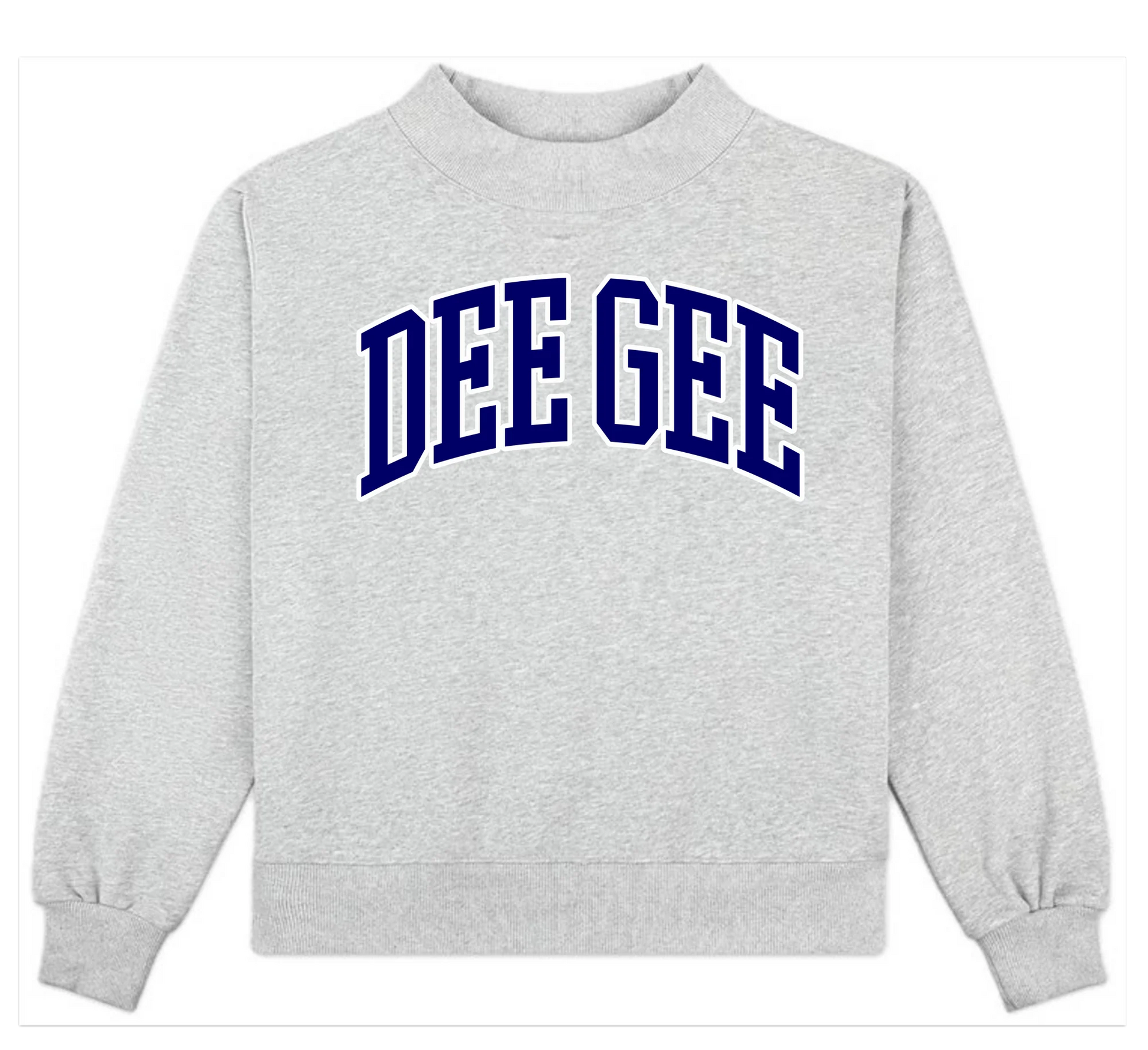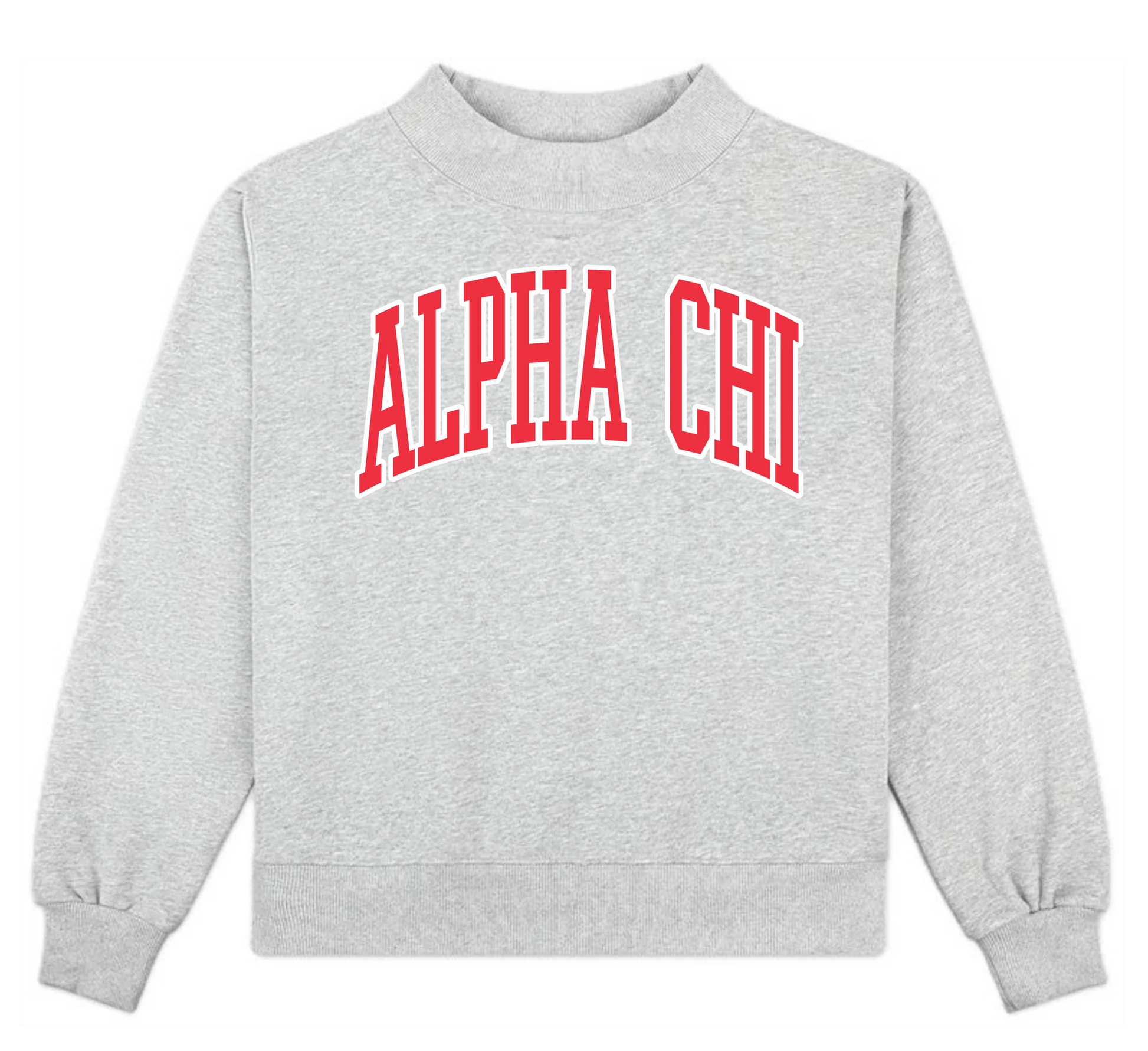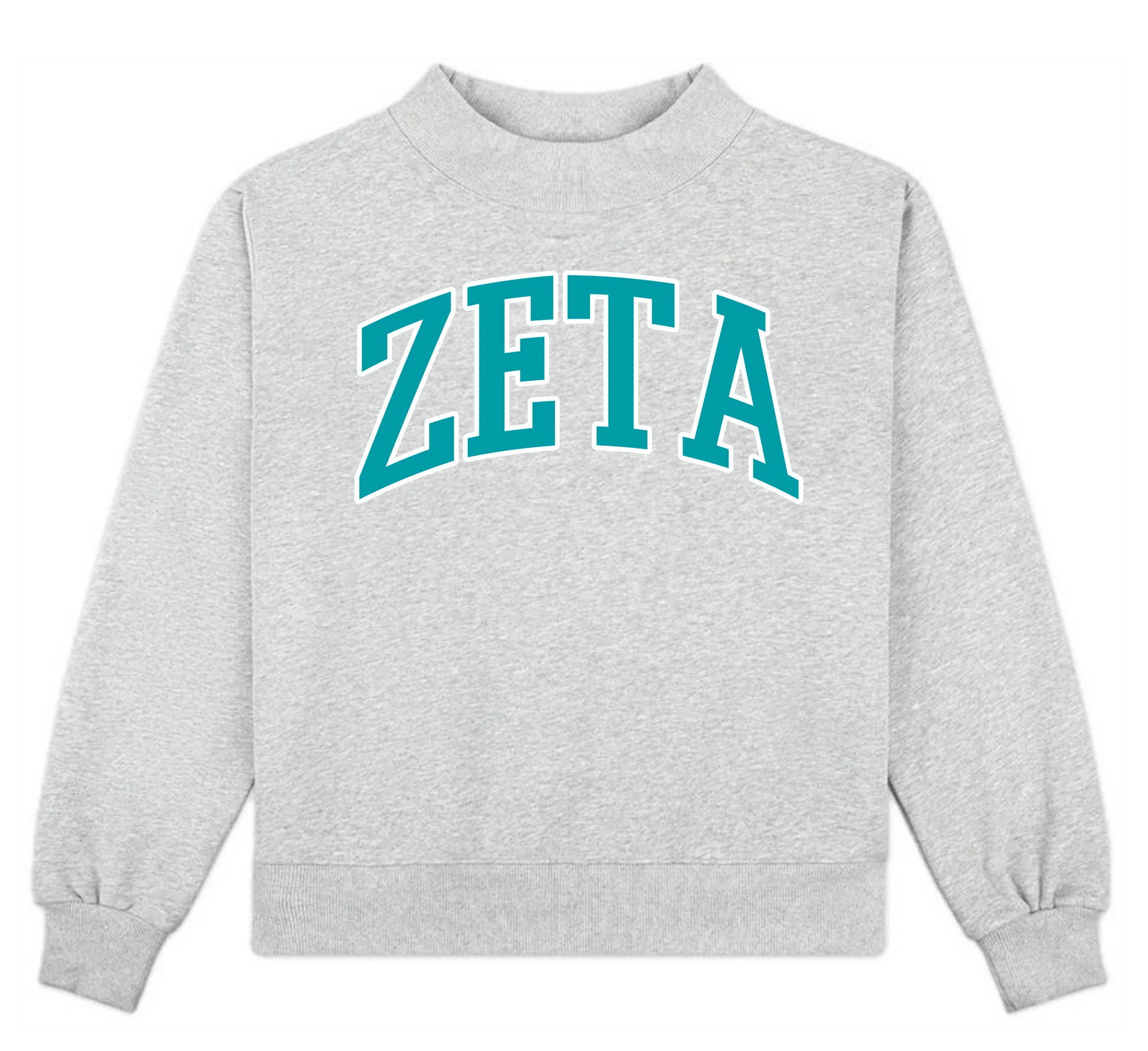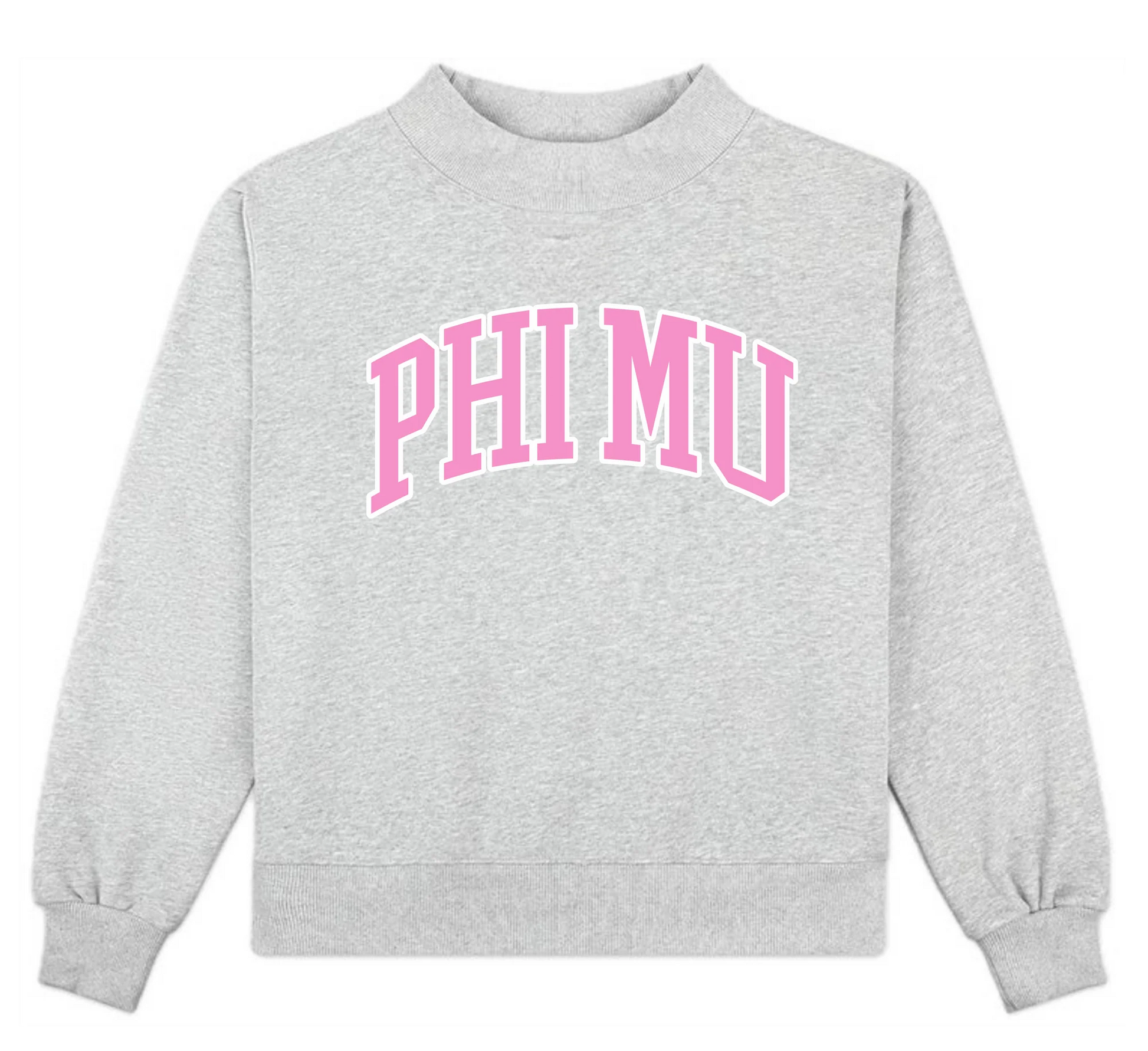 Relaxed, collegiate, and effortlessly cool. The Campus Mock Neck Crew is the sweatshirt you’ll live in—featuring a structured mock neckline and a laid-back silhouette that gives that perfectly oversized feel. Embroidered with your sorority nickname in a bold collegiate arch, it’s made for campus days, chapter nights, and everything in between.