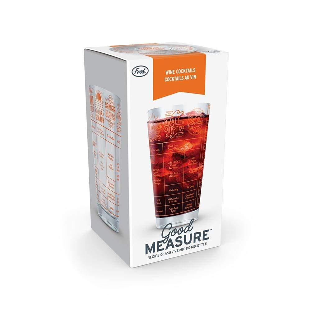 Mix it up with GOOD MEASURE! This 16 ounce measuring glass is printed with seven delectable wine cocktail recipes that are sure to turn you into the most-exacting mixologist. Hand wash only. Cheers!